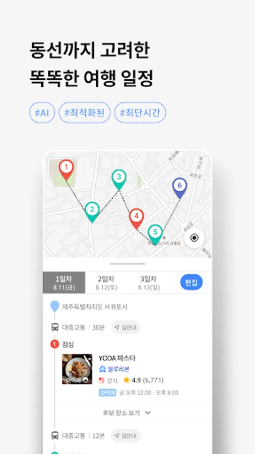 You can receive Yeoda's itinerary within 1 minute of placing an order. For one minute, Yeoda collects and analyzes information on numerous domestic travel destinations, and then creates a travel itinerary just for travelers based on the travel questionnaire you filled out.