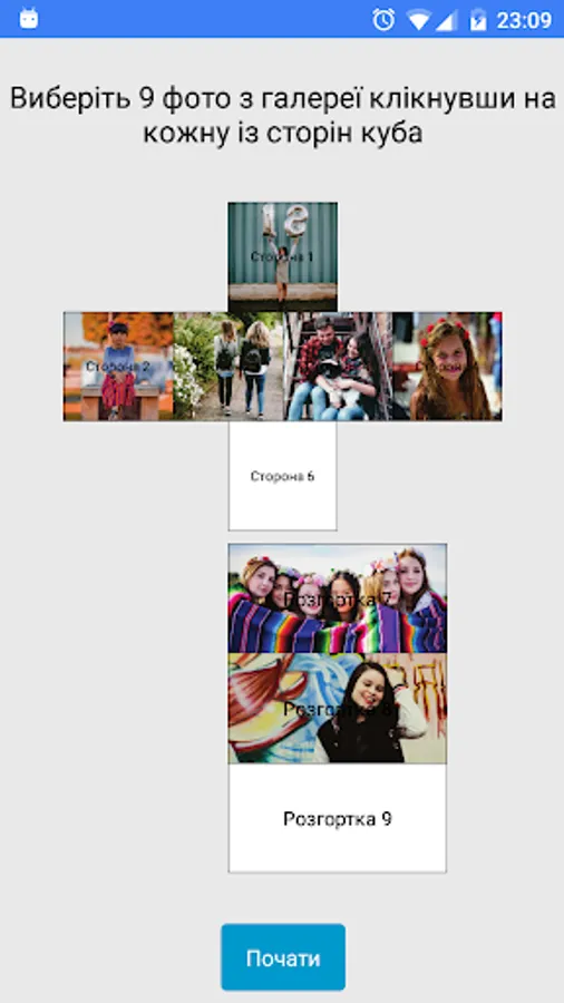 The photo cube contains 9 images (6 photos in size 8 × 8 and 3 photos in size 8 × 16).