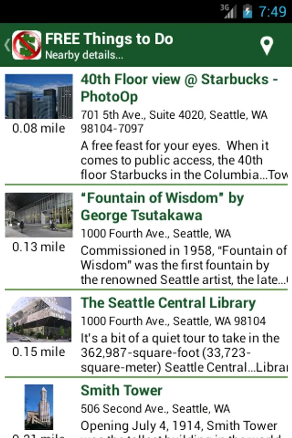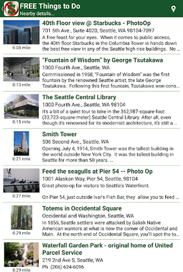 Wherever you are in greater Seattle, this budget-friendly app locates nearby sights, places, and things as you are on-the-go with your smartphone in-hand. Seattle 4 Free gives you locations, photos, mapping, and turn-by-turn directions for: