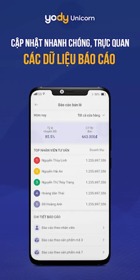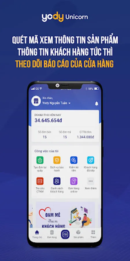 Yody - Unicorn là một phần mềm giúp nhân viên Yody có thể xem được các chỉ số báo cáo, hỗ trợ thông tin và giúp quản lý các công việc của mình hàng ngày
