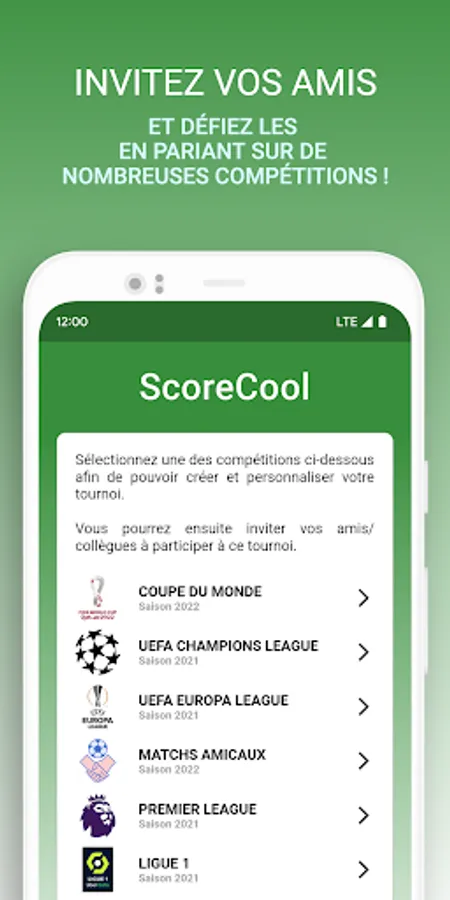 Create tournaments based on the biggest competitions and bet on the good results of the different matches!