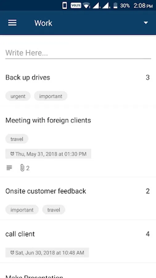 Write down you tasks, to-dos and thoughts out of your mind in Karm and let it remind you at the time you have set and don’t have to worry about forgetting it, with that you’ll feel more relaxed, in control,confident and enjoy more peace-of-mind