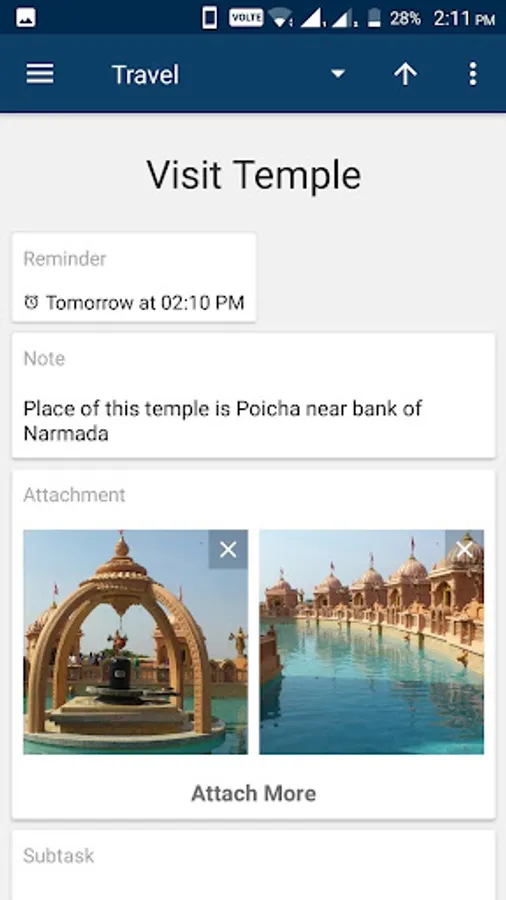 Attachments are also provided to attach images related to tasks. Initially attachment can be used up to 10 Mb limit.