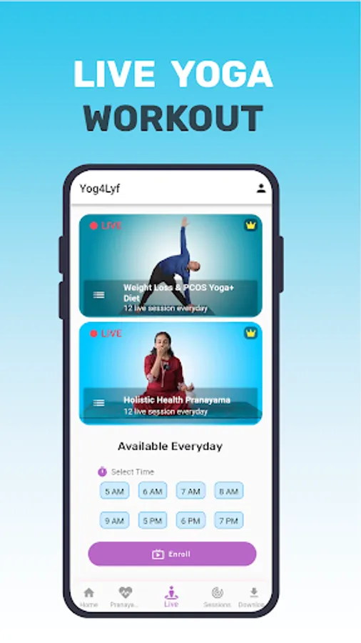 Yog4Lyf is India’s most trusted Yoga for health and wellness. We offer live yoga classes along with 25+ pre recorded online yoga workout for various health and wellness needs. In our yoga app one can attend online yoga sessions in hindi and english videos. Yoga for weight loss and pcos yoga are available as Live yoga classes. One can choose a live yoga class slot as per flexibility.