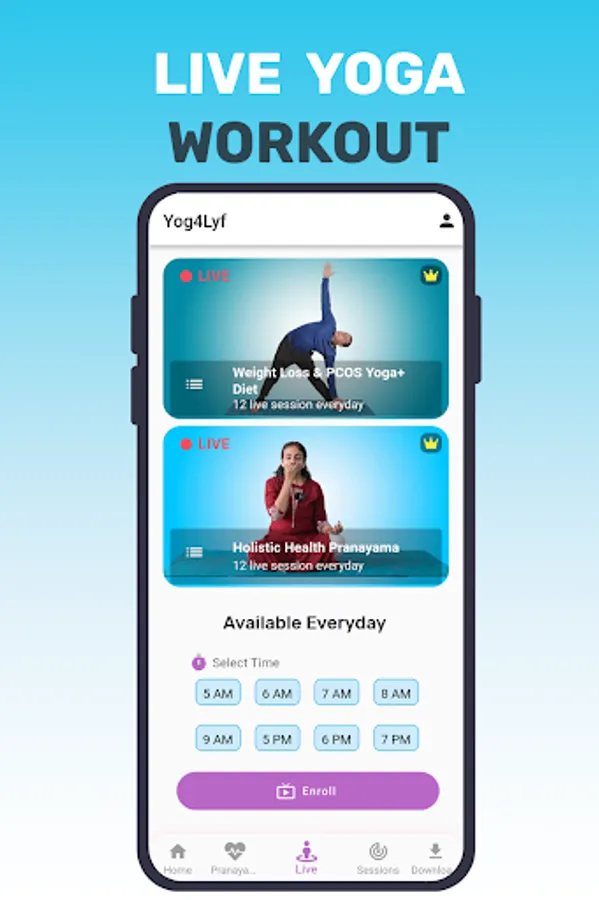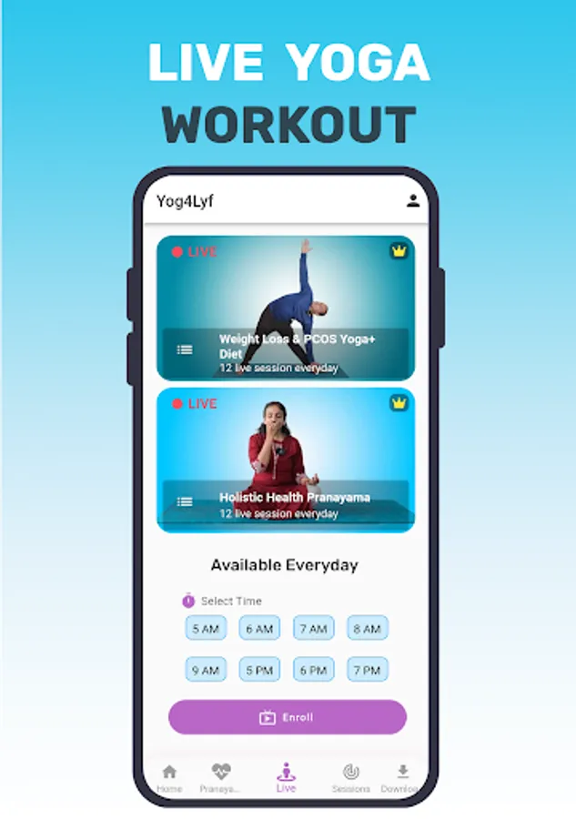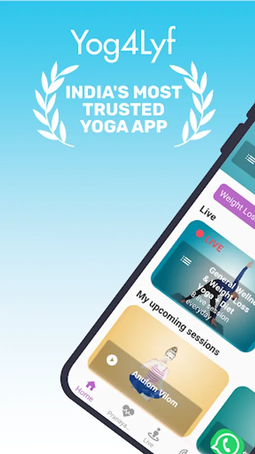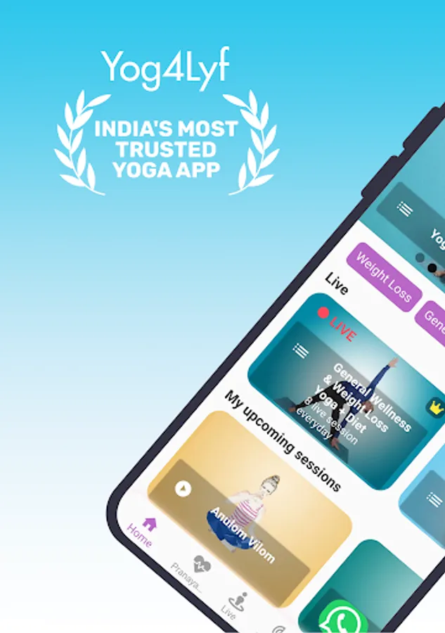 Yog4Lyf is India’s most trusted Yoga for health and wellness. We offer live yoga classes along with 25+ pre recorded online yoga workout for various health and wellness needs. In our yoga app one can attend online yoga sessions in hindi and english videos. Yoga for weight loss and pcos yoga are available as Live yoga classes. One can choose a live yoga class slot as per flexibility.