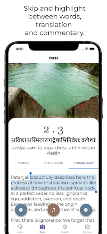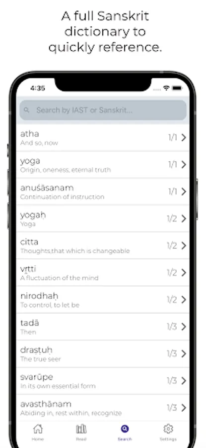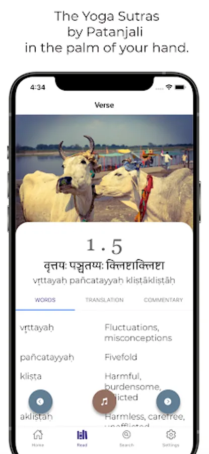 The Yoga Sutras by Patanjali is an incredible resource for anyone interested in Yoga. This app is a swiss army knife study guide complete with a searchable sanskrit dictionary, and audio chanting of every verse.