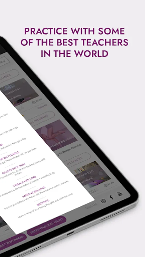 - Choose to download classes so they are accessible even when you don't have an internet connection. Access our yoga tutors and instructors everywhere you go.