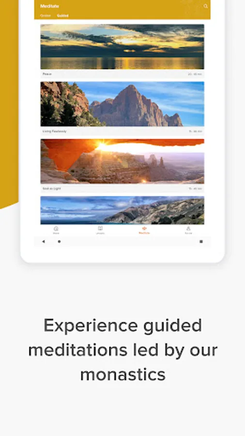- Guided Meditations on Peace, Living Fearlessly, God as Light, Expansion of Consciousness, and more — with customizable meditation times from 15 to 45 minutes