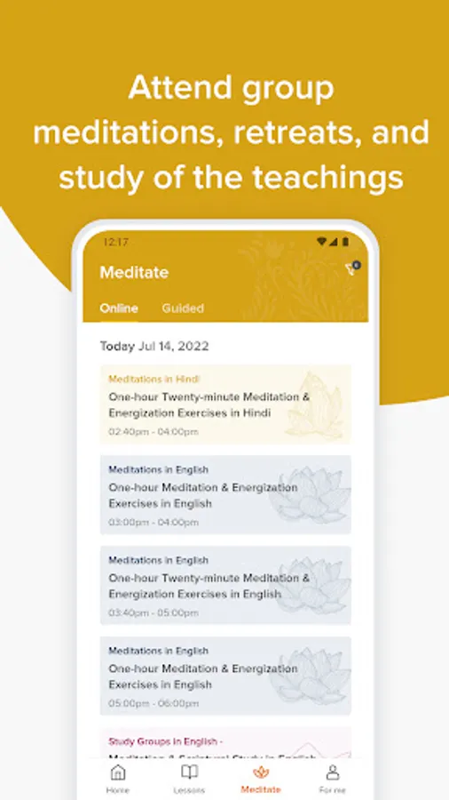 If you are an SRF or YSS Lessons student, please use your verified account information to access the Lessons in the app.