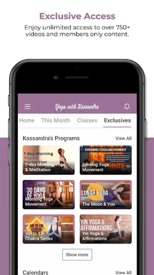 • Full unlimited access to exclusive monthly yoga calendars and programs