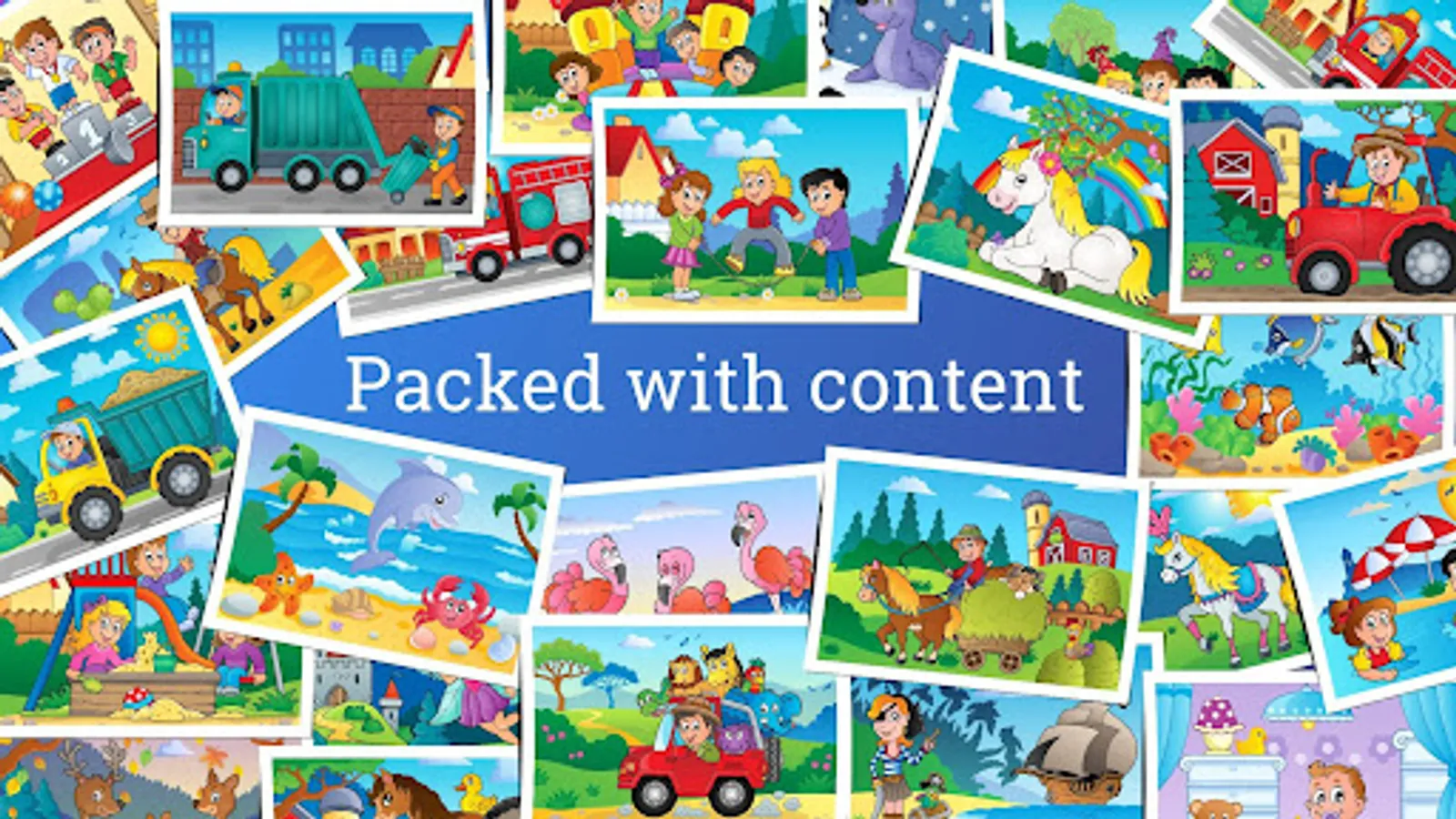- Puzzles scenes with adorable and colourful pictures with dolphins, horses, trucks, fairies, cowboys and much more!