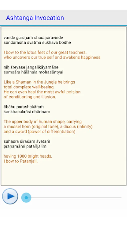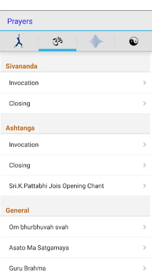 - Ashtanga / Sivananda opening and closing prayers.