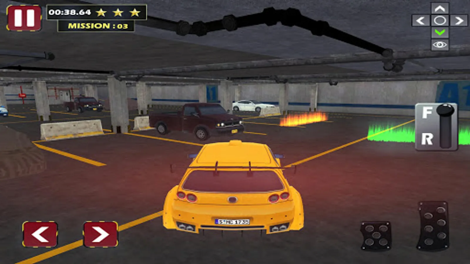 You can change the angle of your camera by simply clicking the camera icon on top right and touching your screen and experience 3D parking challenge. There are 40 different levels for testing your skills in parking!