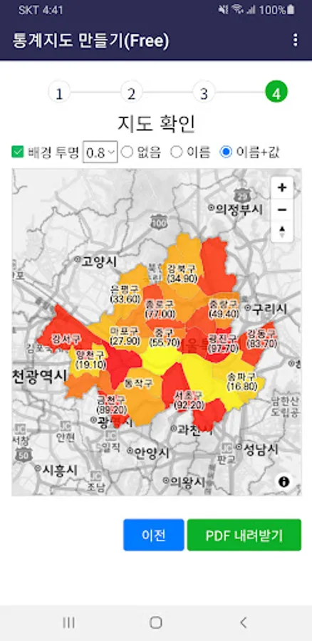 You can easily create a statistical map for each city, county, and gu unit of the Republic of Korea.