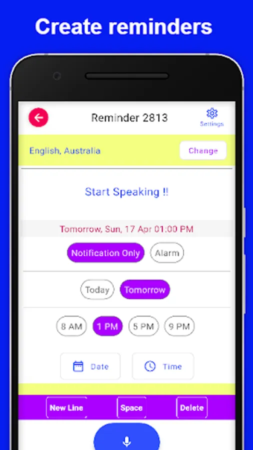 Create Reminder and notes using speech to text in 120+ languages, voice commands, share, web link to view notes and much more