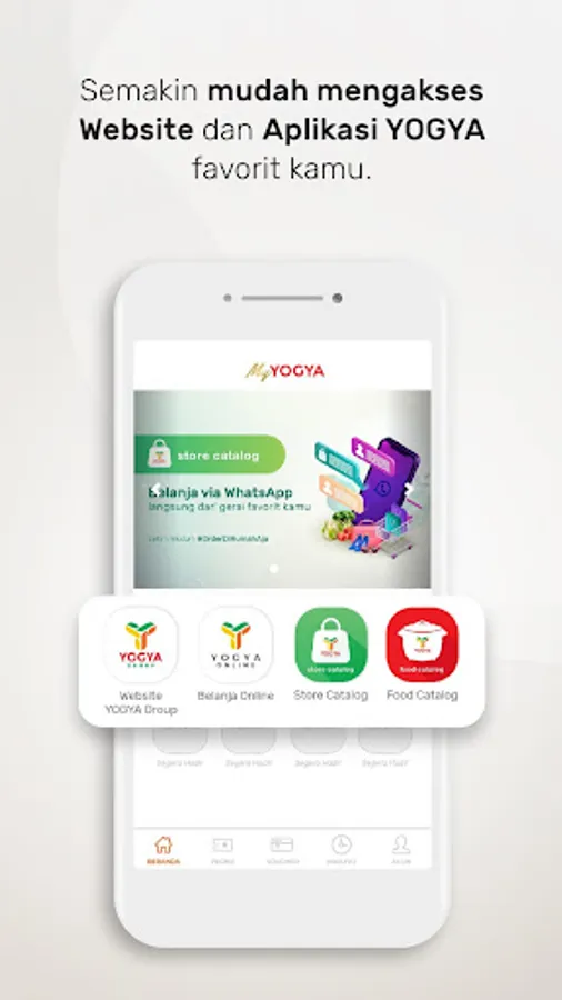 Semua ada dalam satu aplikasi: Yogya Group, Yogya Online, Store Catalog, dan Food Catalog. Semakin mudah mengakses Website dan Aplikasi YOGYA favorit kamu.
