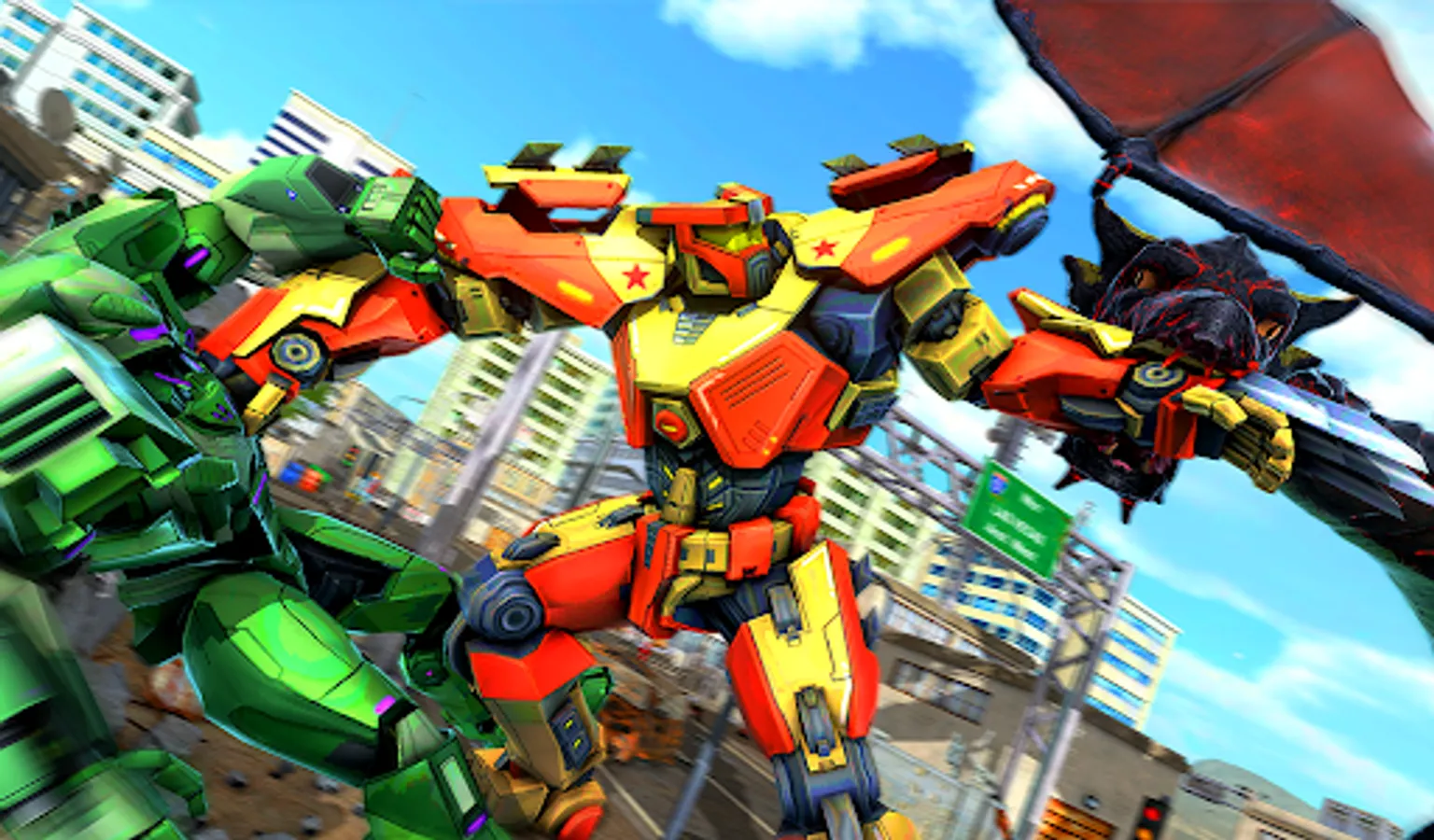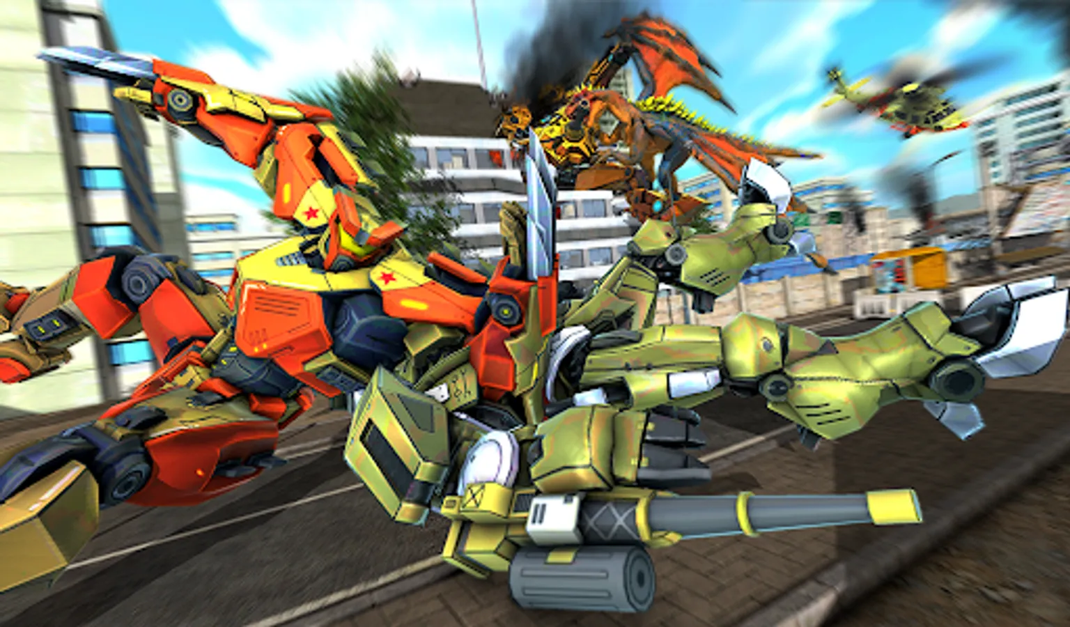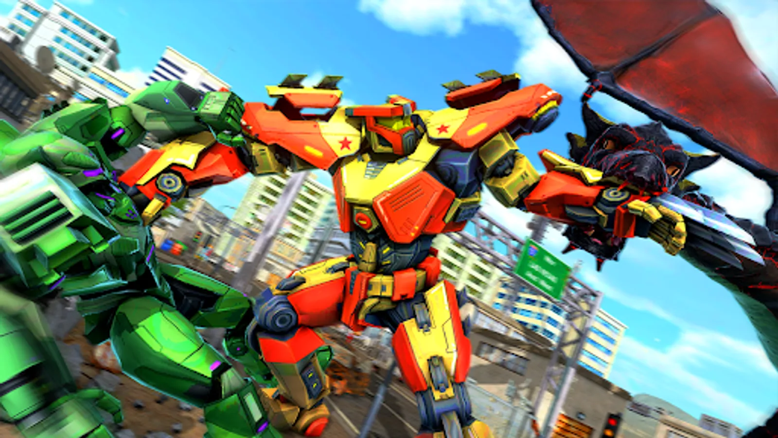 Warrior robots kill the dragon and get points to unlock other unique robots for shooting wars. Fighting ninja robots transform different characters such as lion, dragon, helicopter, drone, swords, car and flying robot. futuristic robot game showing you the game environment as a