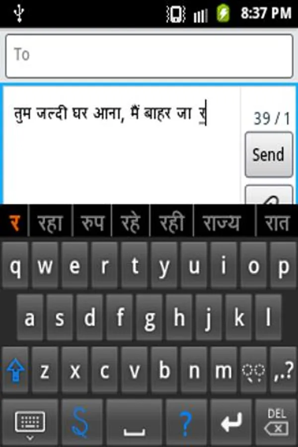* No need to type whole words, suggestions backed by >40,000 words Hindi dictionary