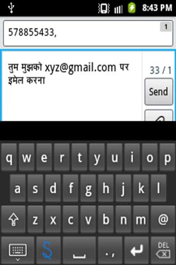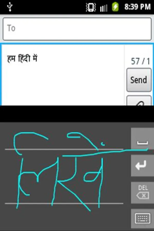* Simply write a word, and end with an usual overbar touching the space or enter key on the right. To type a word not recognised by the dictionary, write each letter/matra separately, tapping the space key.