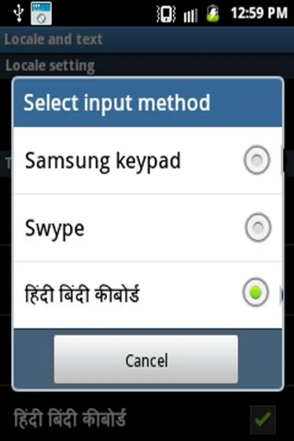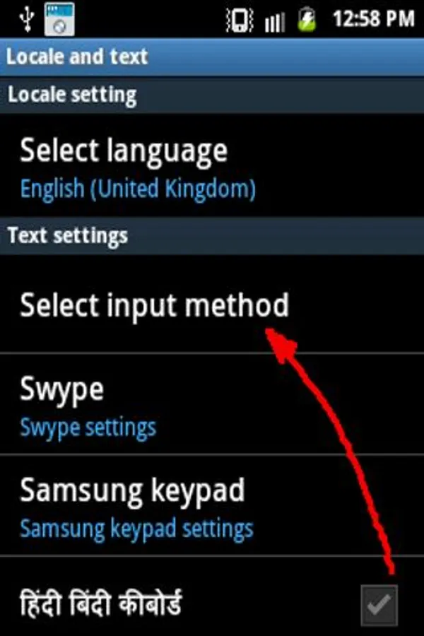 4. Go to 'Select Input Method', and select हिंदी बिंदी कीबोर्ड.