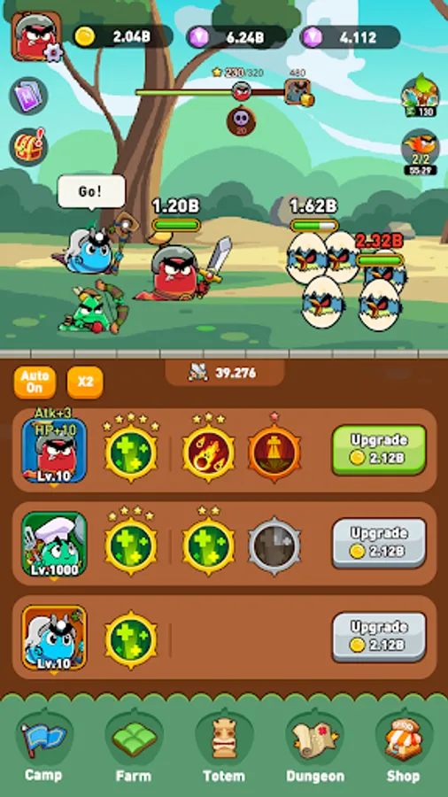 Collect resources and upgrade your squad.