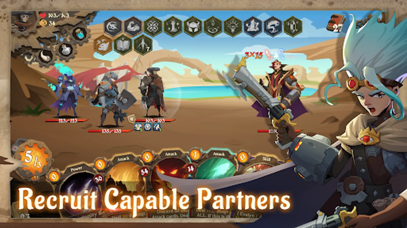 Indies’ Lies puts you in command of a team of 1 hero and up to 2 partners. There are over 10 partners, all with distinctive cards and strengths. You can match the hero deck with hundreds of partners’ cards to try different tactics. Instead of acting as a mere tank, the partner brings on more room for flexible strategies and team tactics.