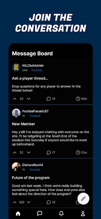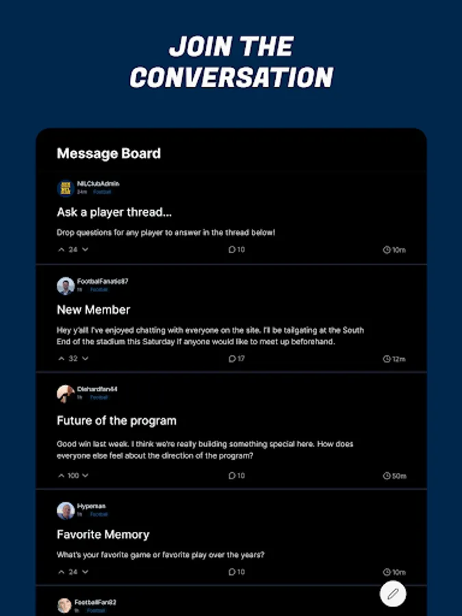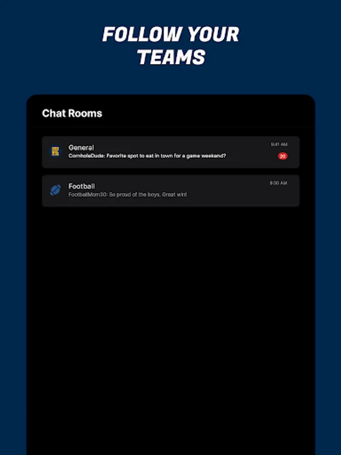 Next-generation fan conversation lives here. Interact with student-athletes and your friends on the message board and inside the chat rooms.