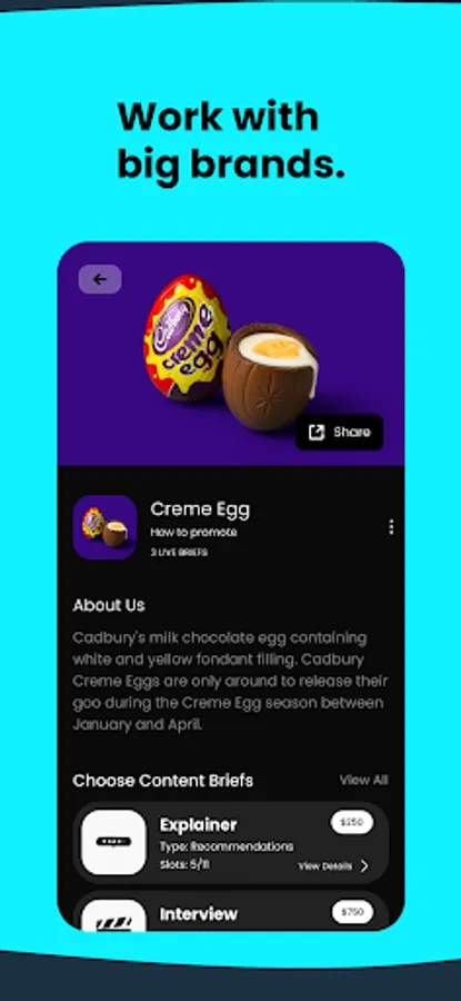 Get paid fairly for your content and learn from influencer marketing experts. With exclusive access to briefs from major brands, it's never been easier to earn with your content creation skills.