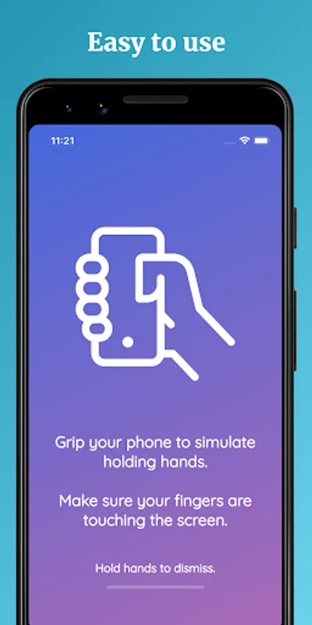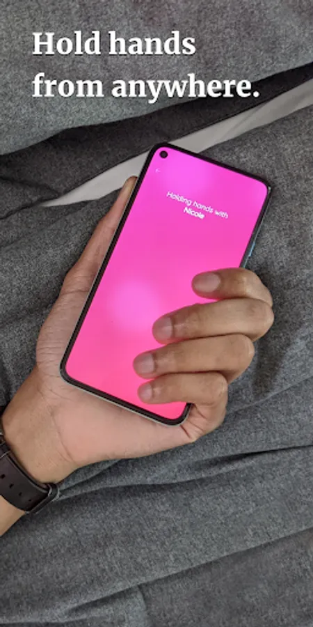 Wrap your fingers around your phone to simulate holding hands. Your phone will vibrate when you're connected with another person.