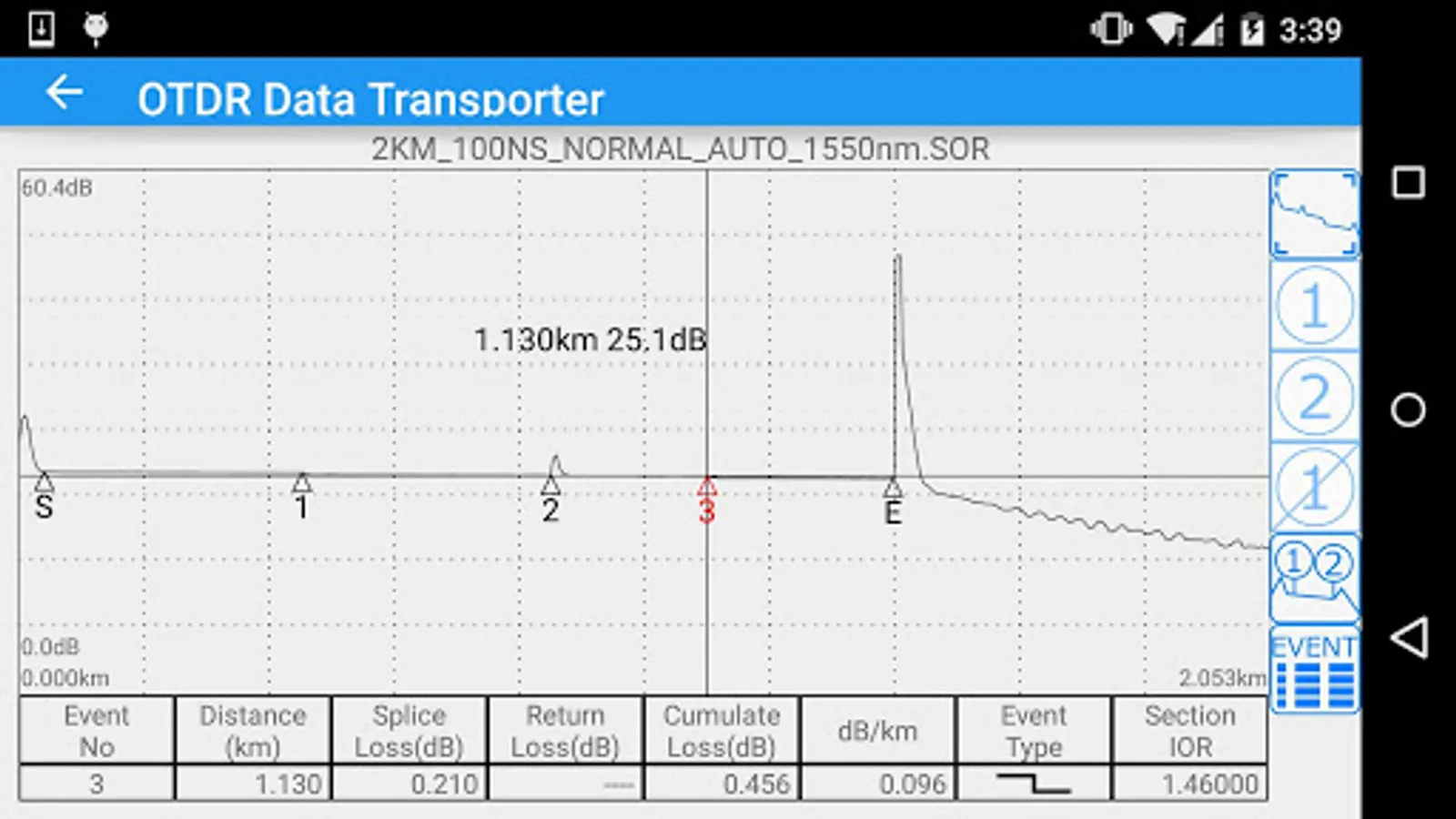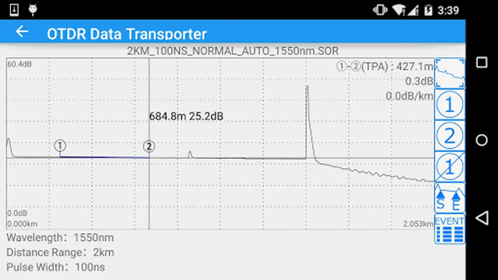 This application can display the OTDR files with the extension .SOR, .PDF, .BMP, .JPG