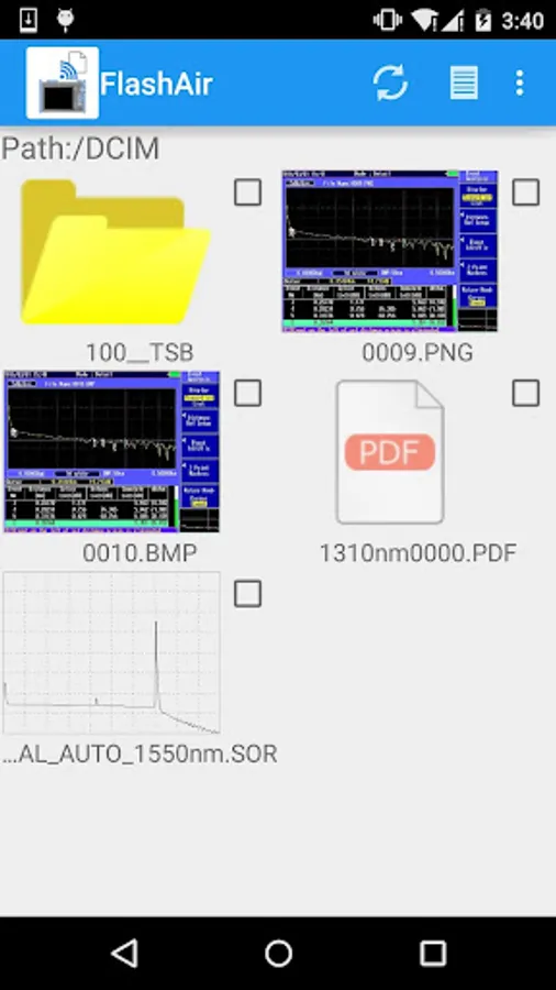 It will also enable the ability to easily mail the measurement trace, report, or image file (.SOR/.PDF/.BMP/.JPG) after the file is transferred to the smartphone.