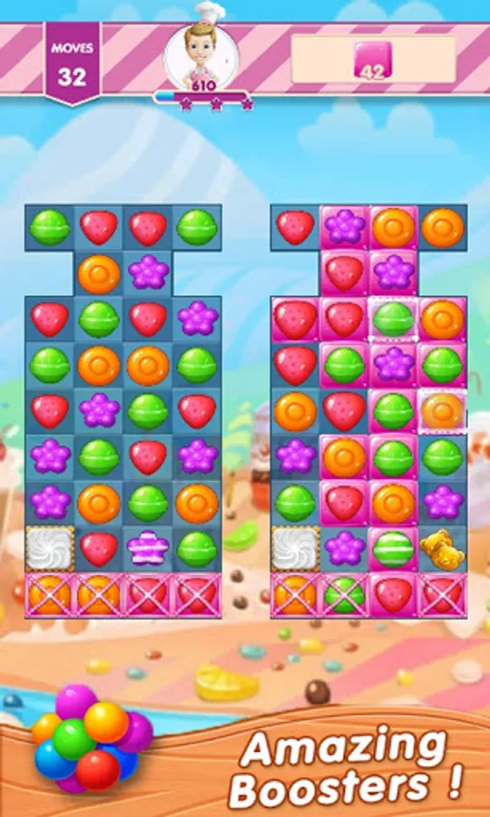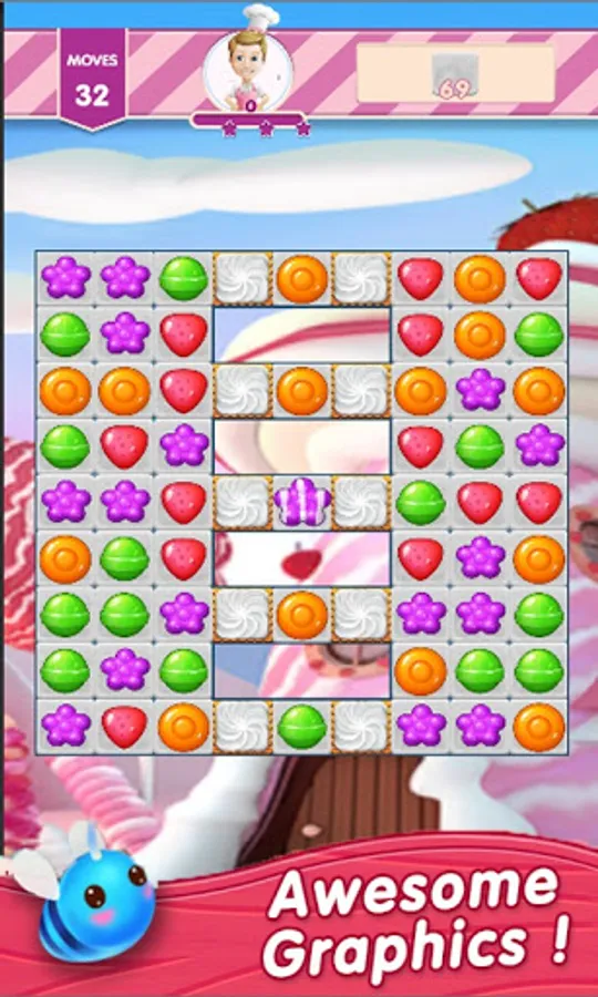 Don’t forget to stay focused to achieve the high target and stay in the game. Complete all the levels one by one and explore the sweet & yummy world of fruit candies.