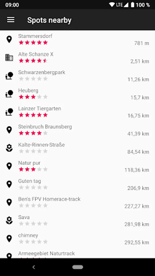 * Detailed information about spots: pictures, videos, description, warnings, reviews