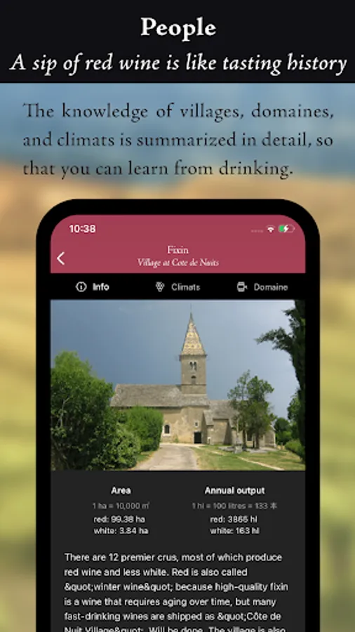 The knowledge of villages, domaines, and climats is summarized in detail, so that you can learn from drinking.