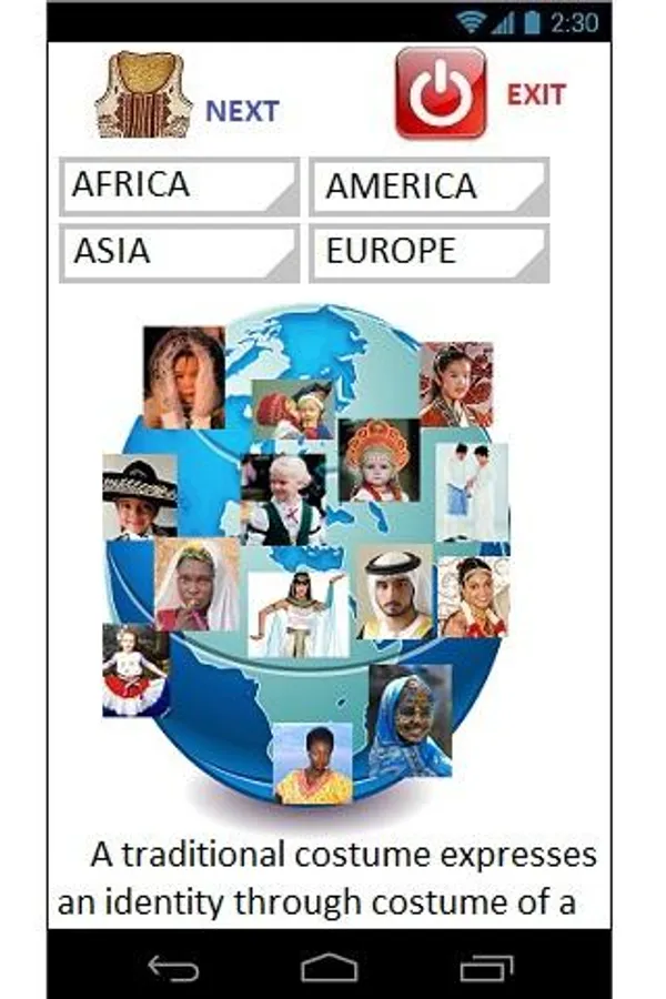 With this application you can inspect 126 traditional costumes from all around the world and the traditional cuisine in that area. Use it when you travel to select what to see or what to eat.