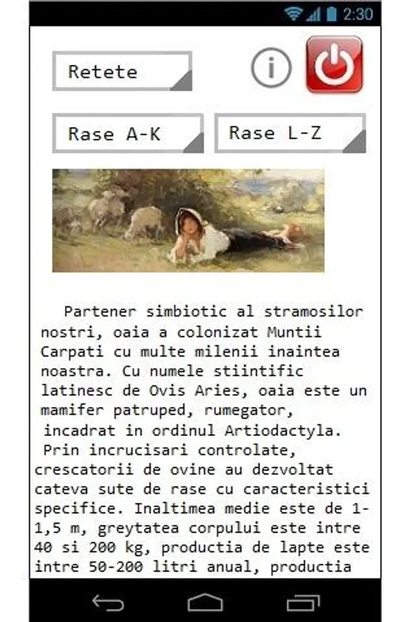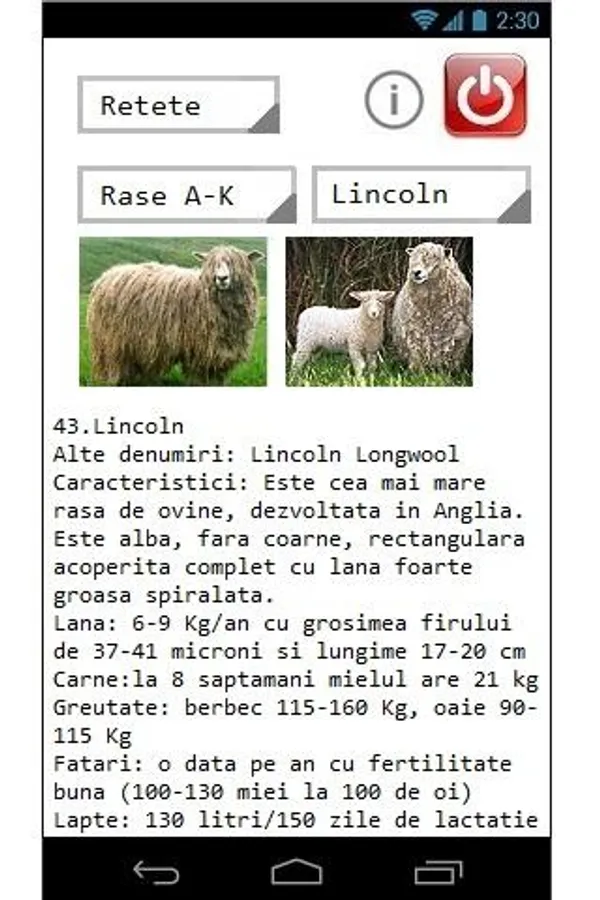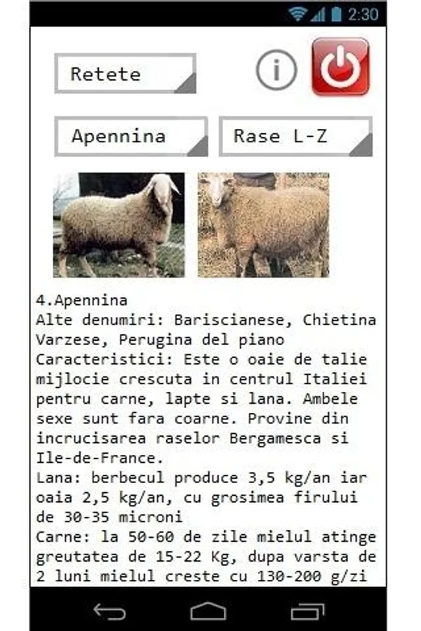 This app contains a short description of the most representative 80 sheep breeds and 35 recipes prepared from milk, meat and sheep cheese.