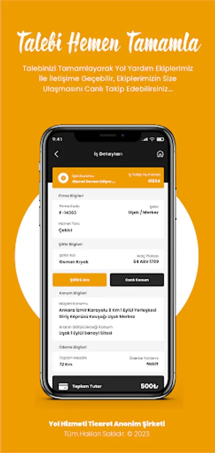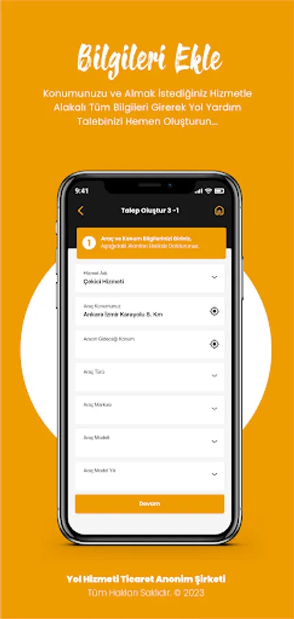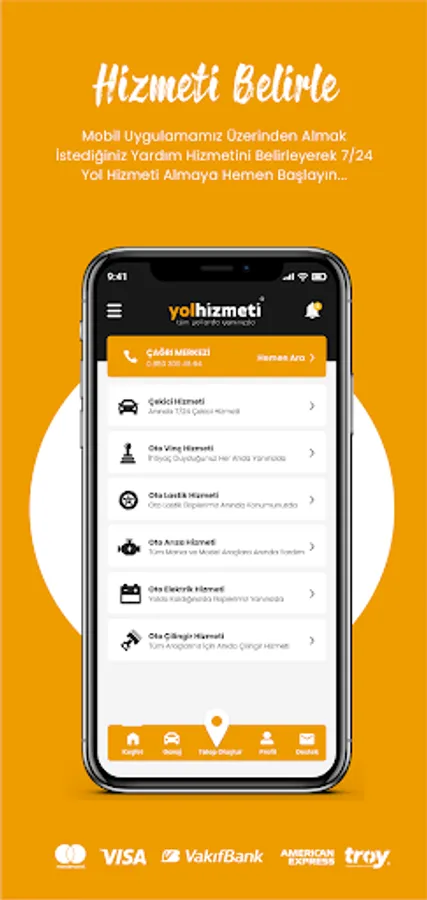 Download the "YOL SERVICE" mobile application to your phone and register with the application. Then, whenever you need, choose the road assistance service you want to receive on the application, anywhere in Turkey, determine your location and our nearest road assistance team will reach you as soon as possible.