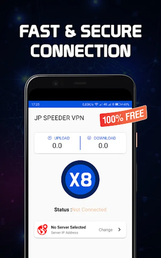 SPEEDER VPN is a totally free VPN Service without any limitations and can be connected with X8 Speeder game no root. Easy to use, one click to connect to VPN server.