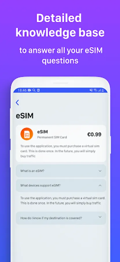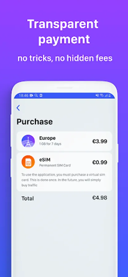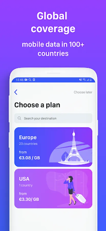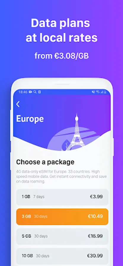No more hassle of removing your old plastic SIM and inserting a new one. eSIM data can be purchased and activated instantly through the app. No need to visit a physical store and deal with SIM activation in a foreign language. Have your internet with you from the moment you arrive in another country.