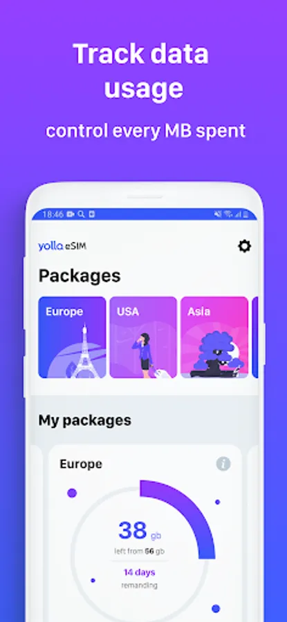 Get mobile data in 100+ countries with a single app and stay connected anywhere, anytime. Be online when you need to and keep track of your data usage. With Yolla eSIM, you'll never miss an important email and will be able to share nice photos with family & friends from any part of the world.