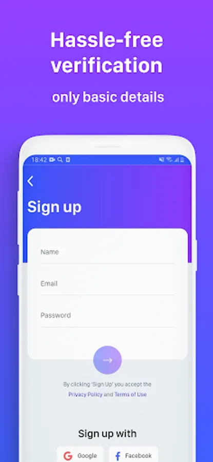 2. Download the app and sign up (you can sign up with email, Google account or Facebook)