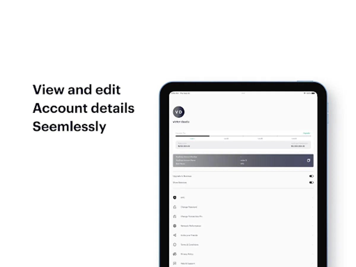 Take charge of your agency banking business with our multifunctional POS app. With a user-friendly interface and high-tech security features, our app is designed to work seamlessly with your POS device(s) so you can manage your business, grow your customer base, and offer numerous services across Africa.
