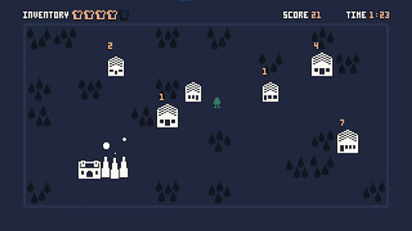 Bread Game is a high-speed simulation game about delivering bread to your fellow townsfolk under the moonlight. Pick up loaves at the local bakery (or bakeries) and distribute your bounty as efficiently and swiftly as possible. A number will appear above each household signifying how many loaves of bread are awaited for delivery. Continue to supply the goods, because households waiting too long for a maximum order of 10 loaves will cause you to game over. Also be sure to keep track of the time, as each run only gives you a couple short minutes to satisfy your customers' demands.
