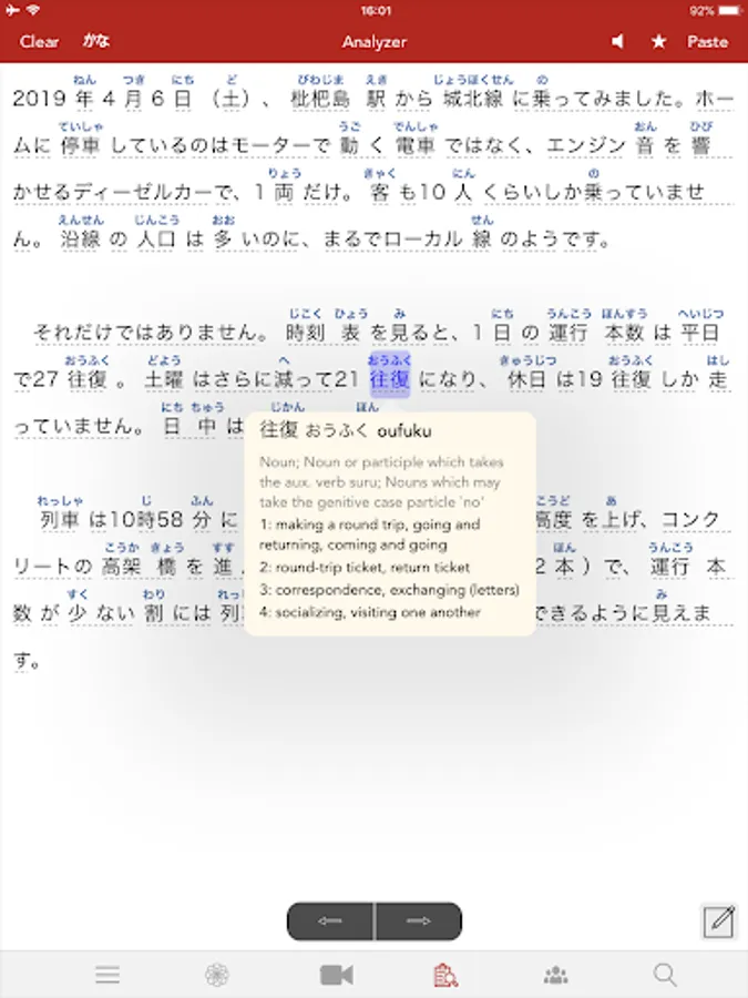 • Paste some text, or import it from the OCR modes, into the text analyzer to get definitions of each word in the text