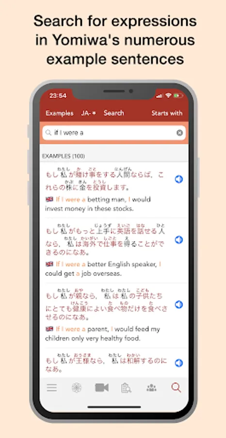 • Listen to the Japanese pronunciation of words and example sentences through the "Speak" function