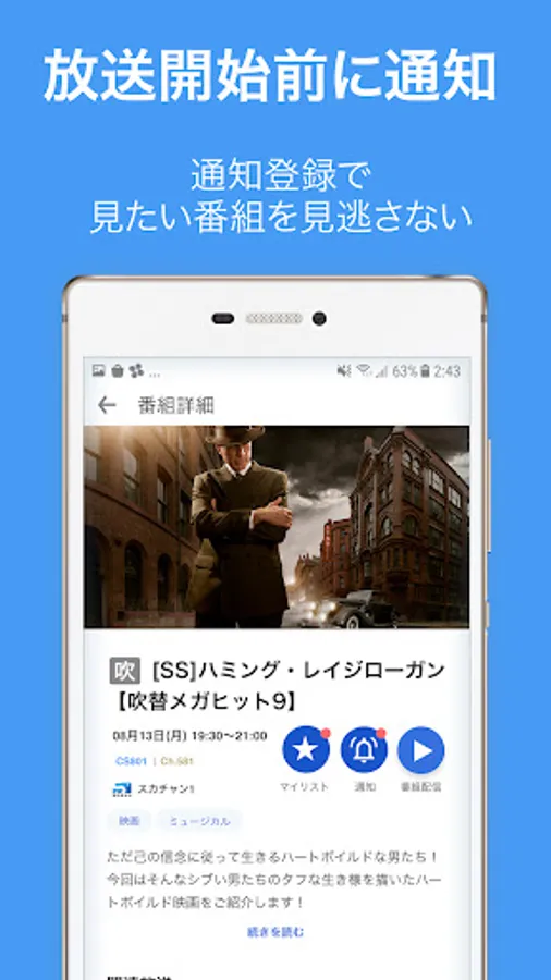 If you register for advance notification of the program you want to watch, you will be notified of the broadcast according to your preferred time.