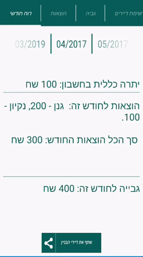 House management easy and convenient manner, adding and deleting tenants, real-time updates of the outstanding invoices, expense management, collection management, description expenses, monthly information sent to all tenants of the building.