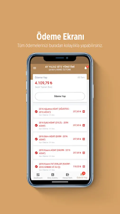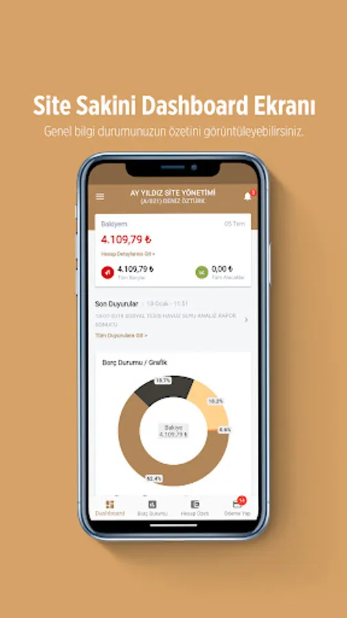 For the residents of the site where Aynar Yapı Yönetim provides Professional Site and Apartment Management services; Dues etc. It is a mobile application where they can follow their debts and pay their current debts with a credit card. It is an application developed for Aynar Yapı Yönetim by Yönetimcell.