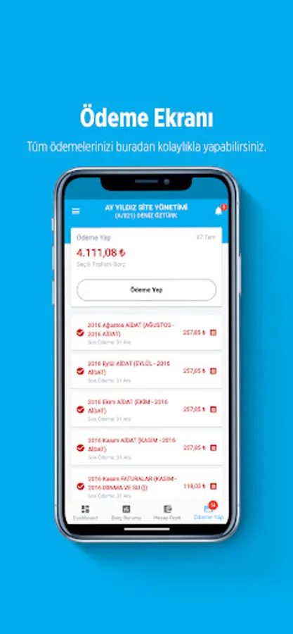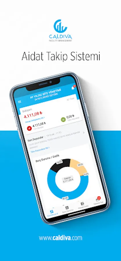 Caldiva Management Professional Site and Apartment Management for the residents of the site; Dues etc. It is a mobile application where they can follow their debts and pay their current debts with a credit card. It is an application developed for Caldiva Management by Yönetimcell.