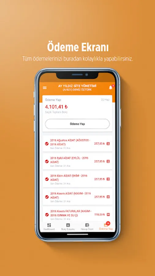 Team Building Management Professional Site and Apartment Management for the residents of the site; Dues etc. It is a mobile application where they can follow their debts and pay their current debts with a credit card. It is an application developed by Yönetimcell for Team Collective Structure Management.
